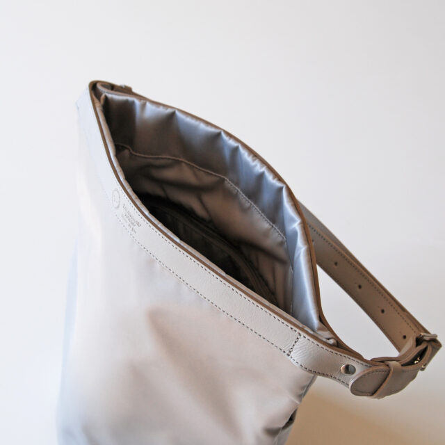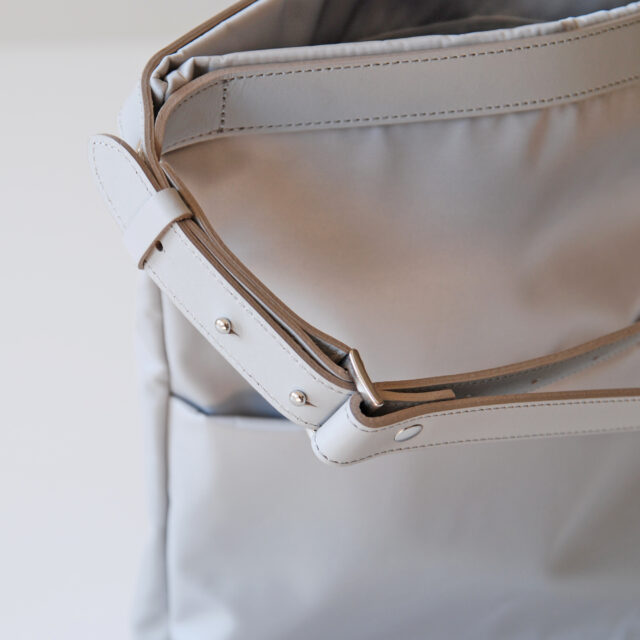 本体には上品な光沢で軽量&撥水性のあるナイロンツイルを使用